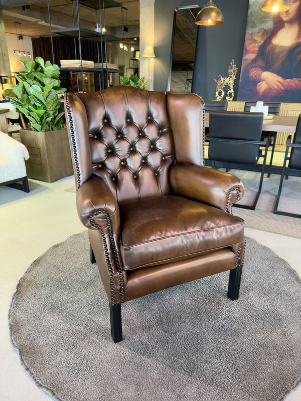 Chesterfield Ledersessel mit Holzbeinen | Modell ODI